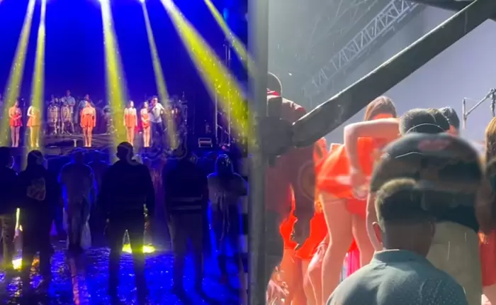 El grupo se encontraba en plena presentación cuando el clima empezó a jugar en contra. La lluvia se volvió cada vez más fuerte y el escenario comenzó a presentar riesgos tanto para las cantantes como para el público que se había reunido para disfrutar del show. Desde el escenario, el animador de la orquesta fue el encargado de explicar lo sucedido y pedir comprensión a los asistentes.