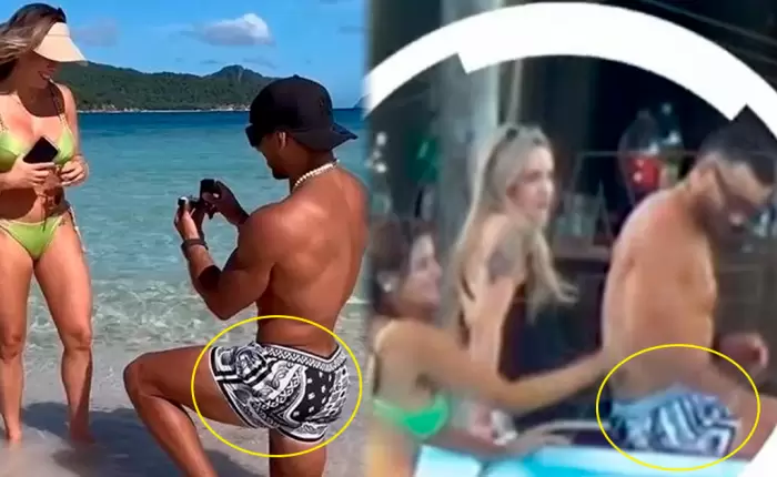 En el reportaje se ve a Said arrodillado en una playa paradisíaca, en uno de los momentos más importantes de su relación: su pedida de mano. Sin embargo, la misma prenda aparece nuevamente en un contexto muy distinto: su ampay en Argentina.