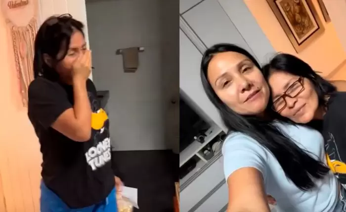 "Llegando a Perú entré al cuarto de Vale y María también se puso sensible", dijo la presentadora al mostrar a su trabajadora del hogar, quien no pudo evitar sollozar.