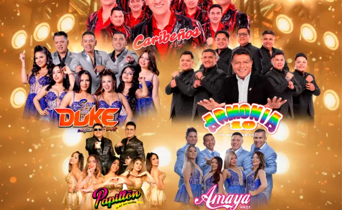 La diversión está garantizada con una cartelera musical de primer nivel y un show imperdible. Agrupaciones de gran renombre como Amaya Hermanos, Armonía 10 de Walther Lozada, Caribeños de Guadalupe, Papillón y Son del Duke se presentarán en el mismo escenario para interpretar los grandes éxitos que dominaron la cumbia a lo largo del año.